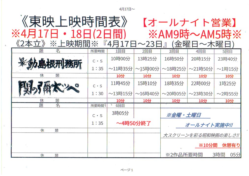 『関東やくざ者』9:30/12/40/15:50/19:00/22…