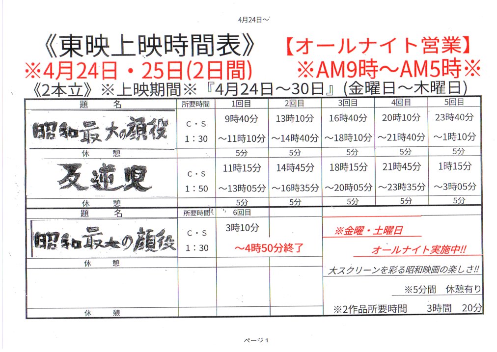新世界東映 6/28~7/25の月間プログラム…